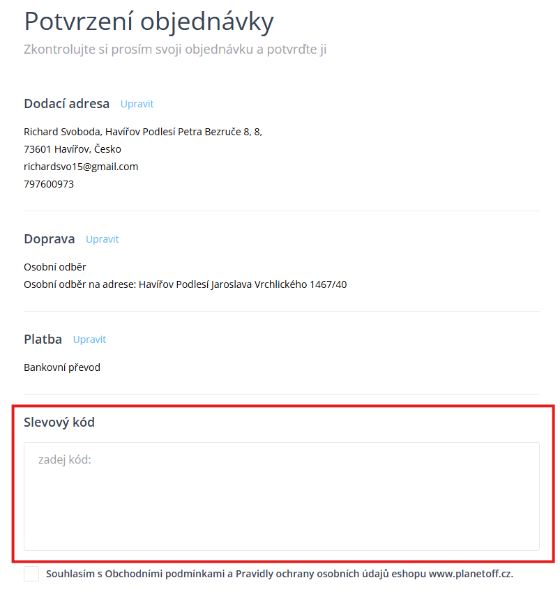 Jak uplatnit slevový kód na stránce Planetoff.cz: