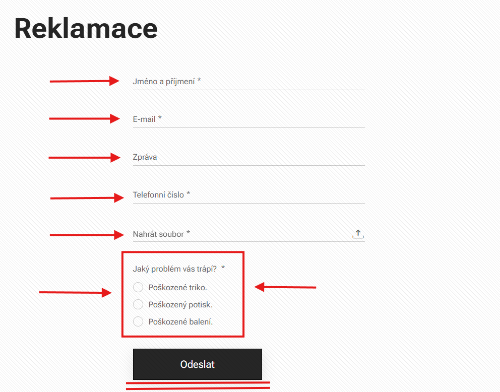 ⚠ UPOZORNĚNÍ: Pokud nevyplníte všechny údaje pravdivě, vaše reklamace nebude přijata!